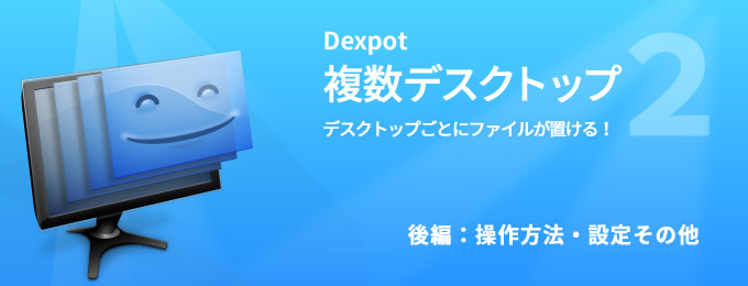 Dexpotというフリーソフトは、PC内に実際に複数のデスクトップフォルダを作成してくれます。このフォルダにファイルを置くことで、完全に個別のアイコンが配置された複数デスクトップを利用できるようになります。