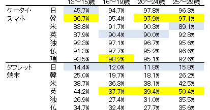 日本の13~15歳(≒中学生)では,7割がデスクトップもノートも持っていません。他国の1~2割とは大違いです。