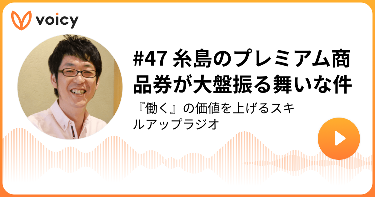 ということで、今日はVoicy「スキルアップラジオ」の放送から「糸島のプレミアム商品券が大盤振る舞いな件」をお届けしました。