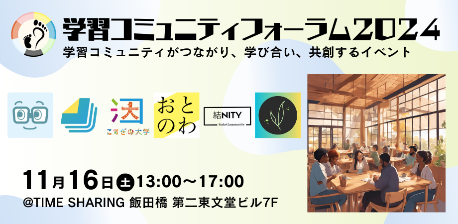 学習コミュニティフォーラムは、学習コミュティ同士がつながり、学び合い、共創することを目的として、11/16(土)に東京で開催されます。
