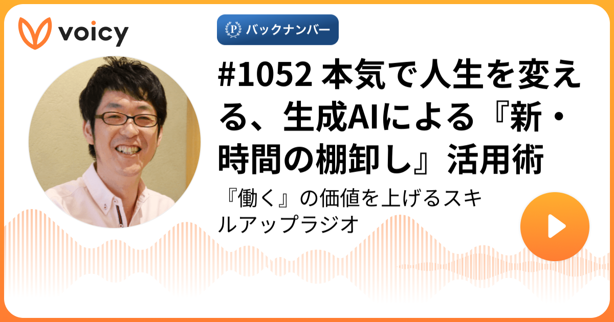 #1052 本気で人生を変える、生成AIによる『新・時間の棚卸し』活用術 | タカハシノリアキ「『働く』の価値を上げるスキルアップラジオ」/ Voicy - 音声プラットフォーム
