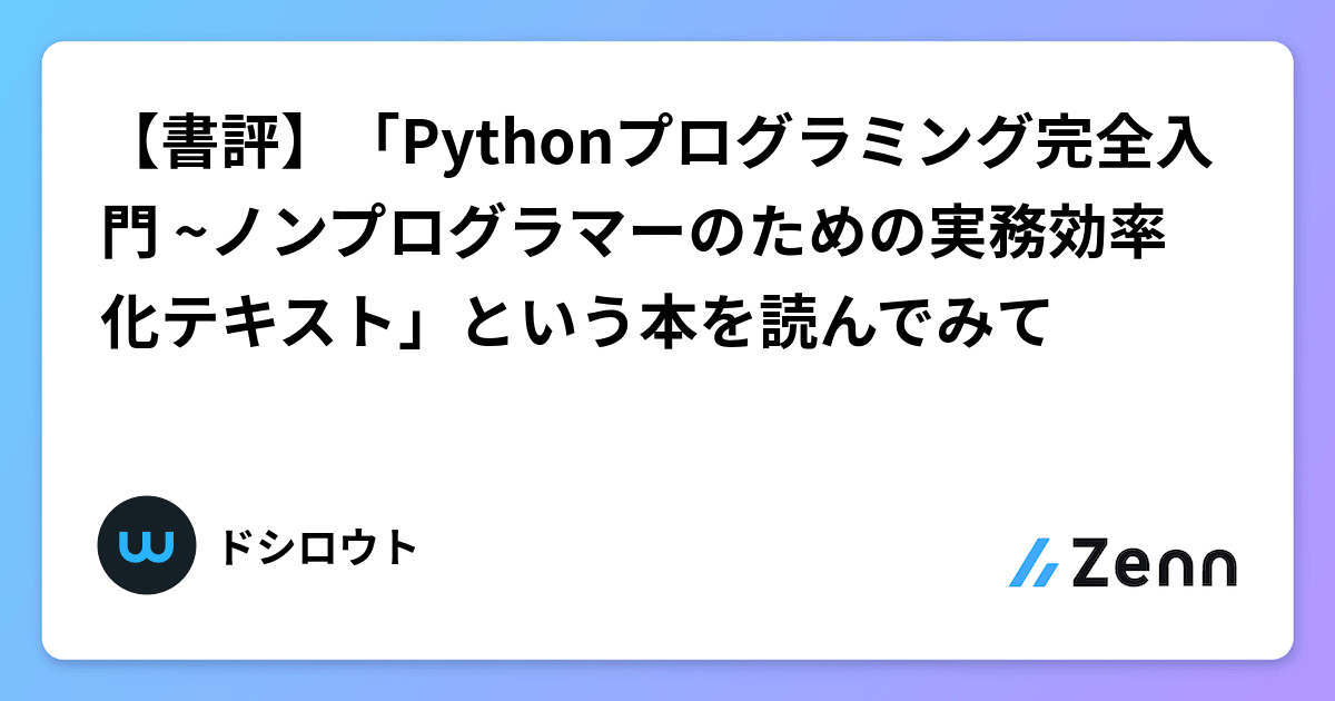- 本日発売「Pythonプログラミング完全入門~ノンプログラマーのための実務効率化テキスト~」のあとがきを全文無料公開