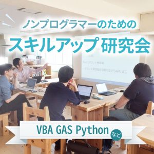 「ノンプログラマーのためのスキルアップ研究会」は、ノンプログラマーがプログラミングをはじめとするITスキルを学び合うコミュニティです。