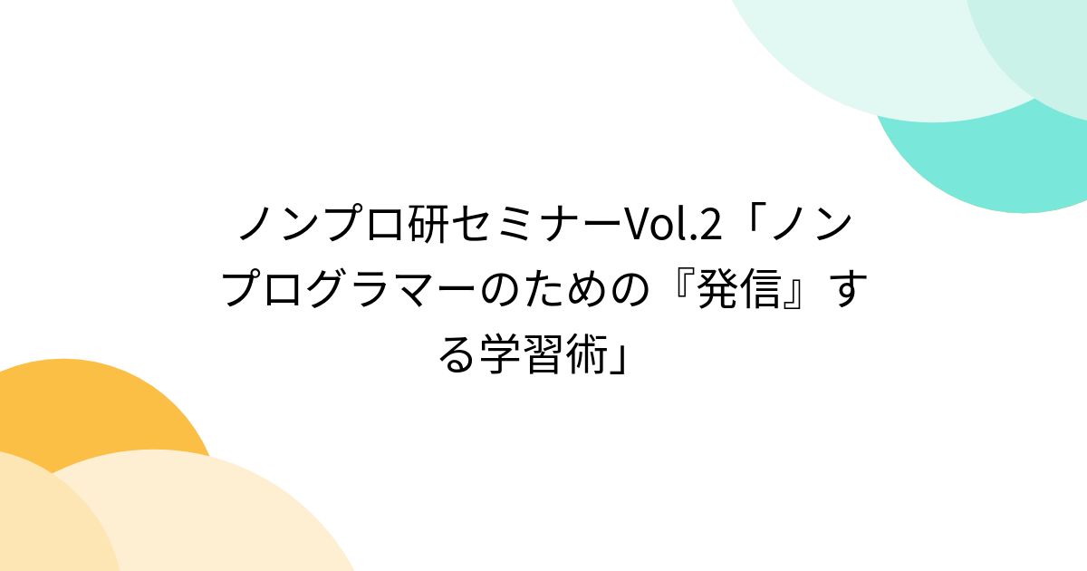 ノンプロ研セミナーVol.2「ノンプログラマーのための『発信』する学習術」