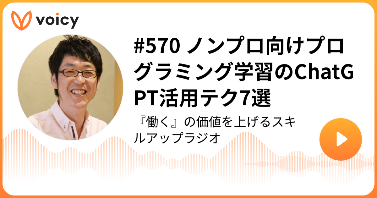ということで、今日はVoicy「スキルアップラジオ」の放送から「ノンプロ向けプログラミング学習のChatGPT活用テク7選」をお届けしました。