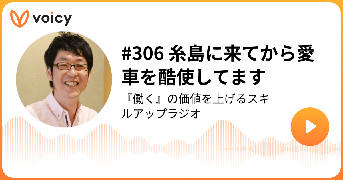 ということで、今日はVoicy「スキルアップラジオ」の放送から「糸島に来てから愛車を酷使してます」をお届けしました。