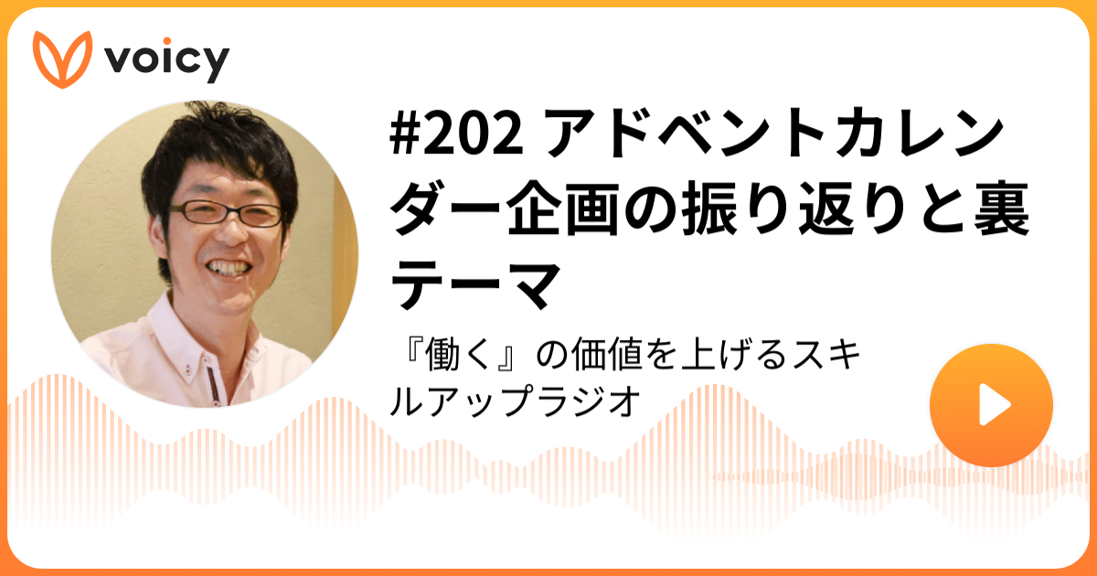 ということで、今日はVoicy「スキルアップラジオ」の放送から「アドベントカレンダー企画の振り返りと裏テーマ」をお届けしました。
