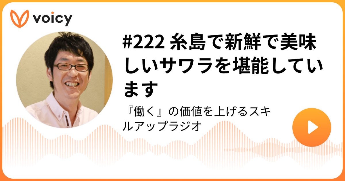 ということで、今日はVoicy「スキルアップラジオ」の放送から「糸島で新鮮で美味しいサワラを堪能しています」をお届けしました。