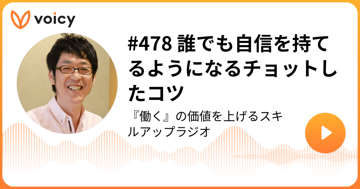 #478 誰でも自信を持てるようになるチョットしたコツ | タカハシノリアキ「『働く』の価値を上げるスキルアップラジオ」/ Voicy - 音声プラットフォーム