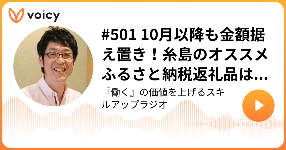 ということで、今日はVoicy「スキルアップラジオ」の放送から「10月以降も金額据え置き!糸島のオススメふるさと納税返礼品はこれ!」をお届けしました。