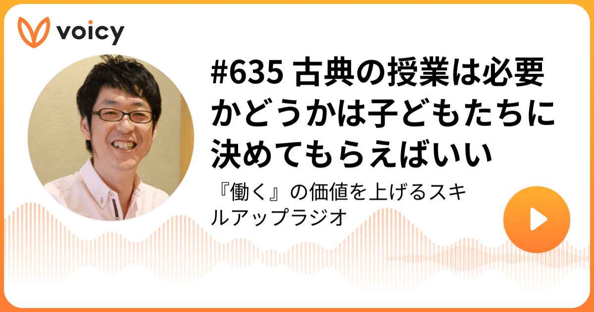 ということで、今日はVoicy「スキルアップラジオ」の放送から「古典の授業は必要かどうかは子どもたちに決めてもらえばいい」をお届けしました。