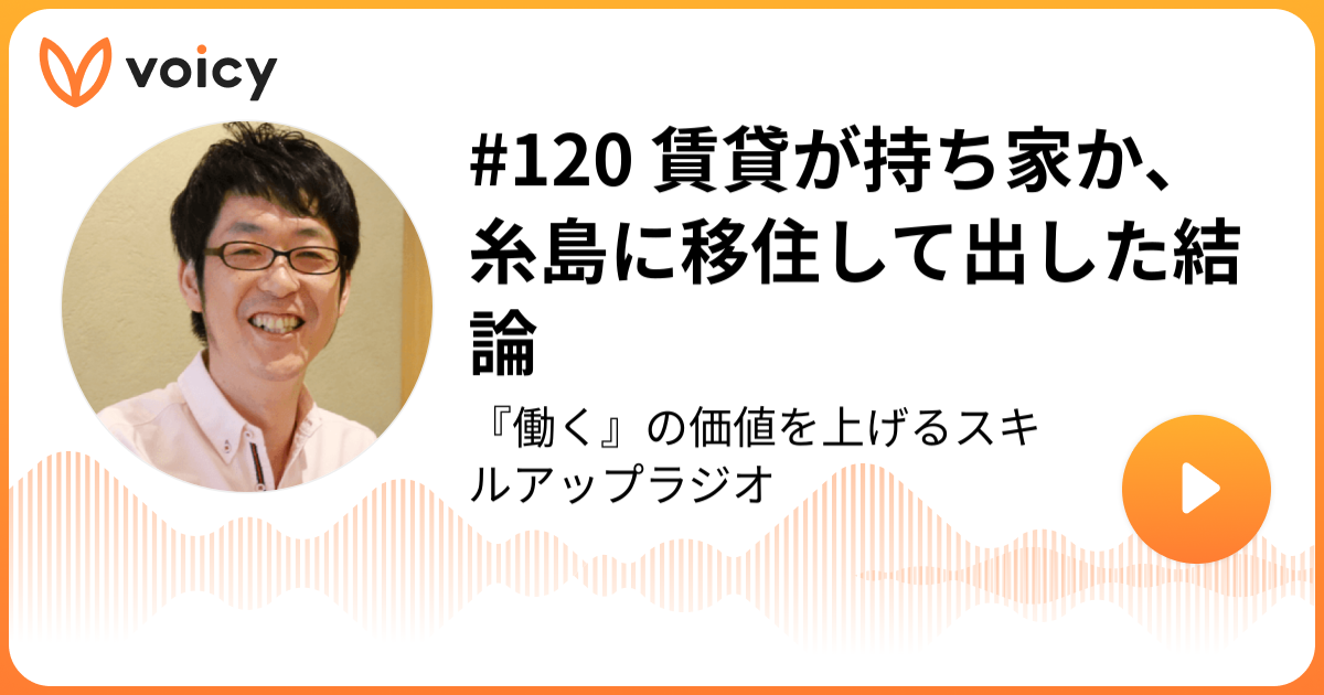 ということで、今日はVoicy「スキルアップラジオ」の放送から「賃貸が持ち家か、糸島に移住して出した結論」をお届けしました。