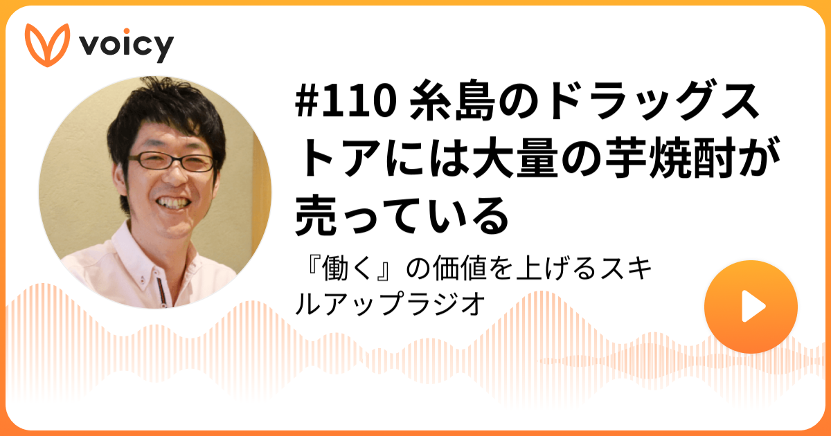 ということで、今日はVoicy「スキルアップラジオ」の放送から「糸島のドラッグストアには大量の芋焼酎が売っている」をお届けしました。