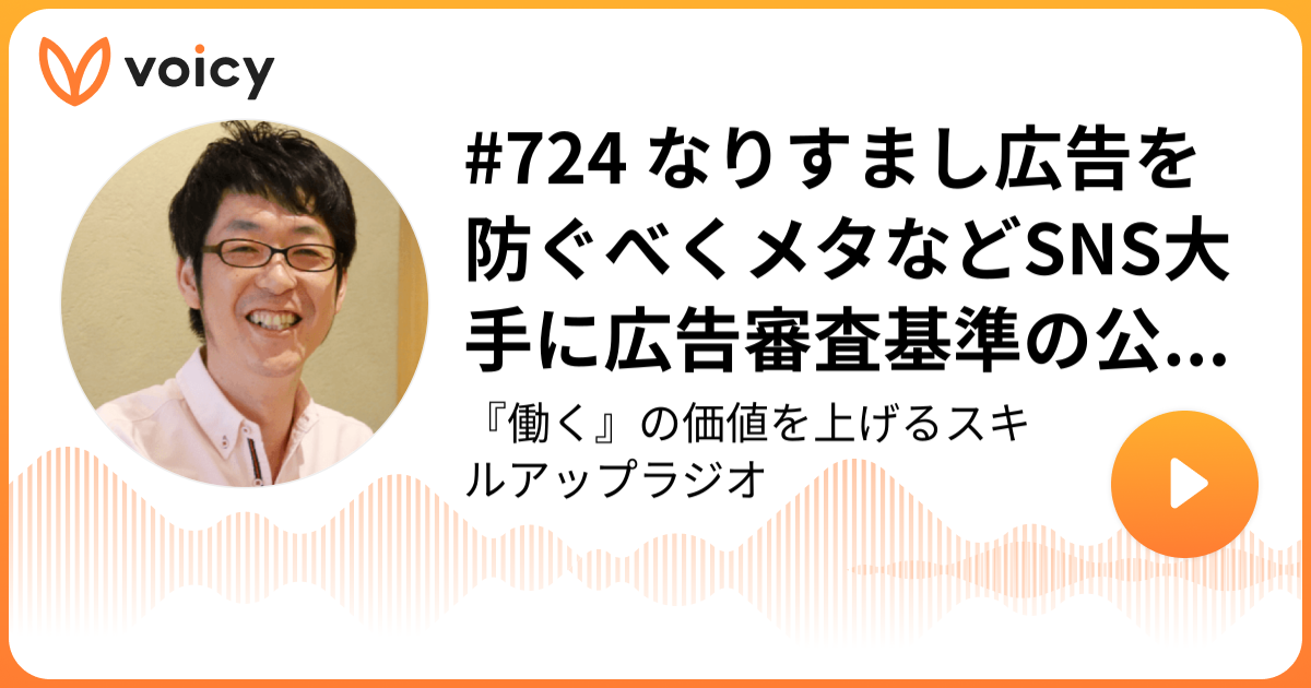 ということで、今日はVoicy「スキルアップラジオ」の放送から「なりすまし広告を防ぐべくメタなどSNS大手に広告審査基準の公表義務化へ」をお届けしました。