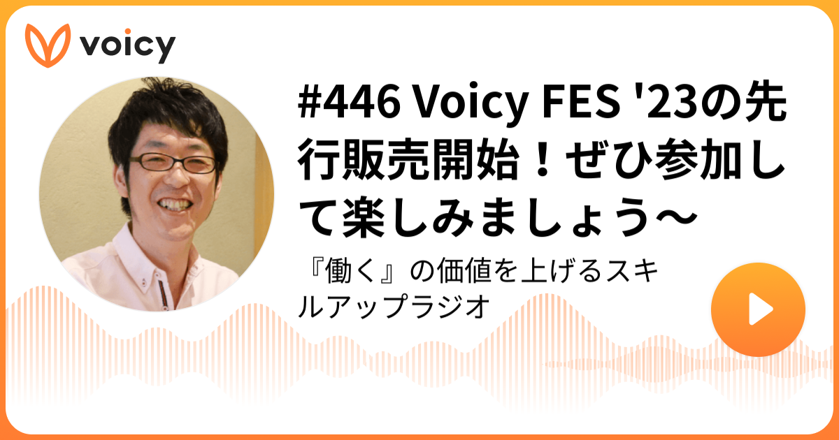 #446 Voicy FES '23の先行販売開始!ぜひ参加して楽しみましょう〜 | タカハシノリアキ「『働く』の価値を上げるスキルアップラジオ」/ Voicy - 音声プラットフォーム