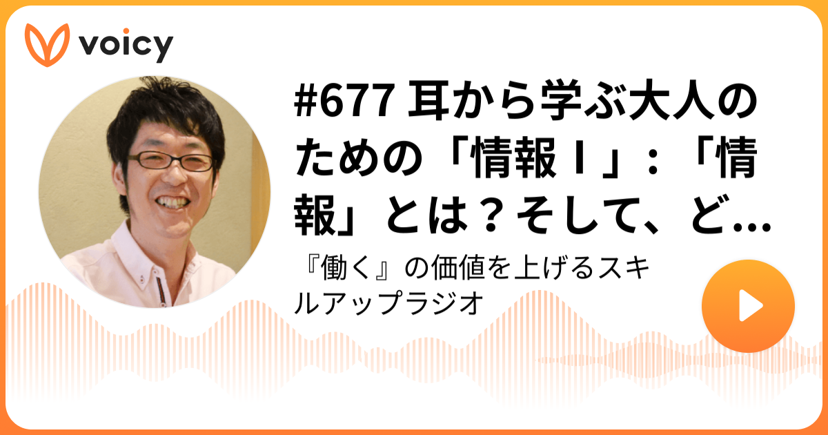 ということで、今日はVoicy「スキルアップラジオ」の放送から『耳から学ぶ大人のための「情報Ⅰ」: 「情報」とは?そして、どんなメリデメあるの?』をお届けしました。