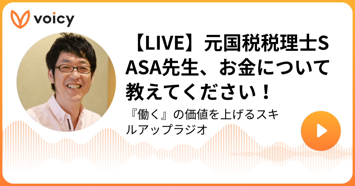 【LIVE】元国税税理士SASA先生、お金について教えてください! | タカハシノリアキ「『働く』の価値を上げるスキルアップラジオ」/ Voicy - 音声プラットフォーム