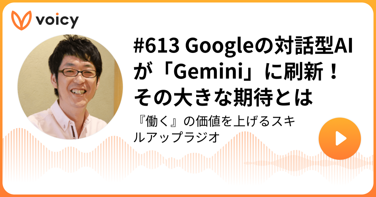 ということで、今日はVoicy「スキルアップラジオ」の放送から「Googleの対話型AIが「Gemini」に刷新!その大きな期待とは」をお届けしました。