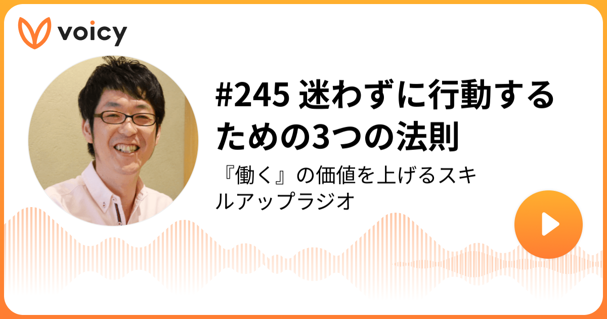 ということで、今日はVoicy「スキルアップラジオ」の放送から「迷わずに行動するための3つの法則」をお届けしました。