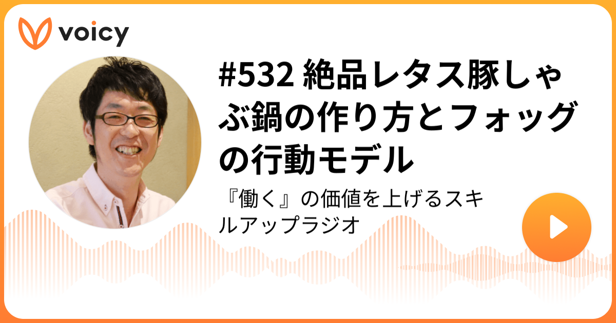 ということで、今日はVoicy「スキルアップラジオ」の放送から「絶品レタス豚しゃぶ鍋の作り方とフォッグの行動モデル」をお届けしました。