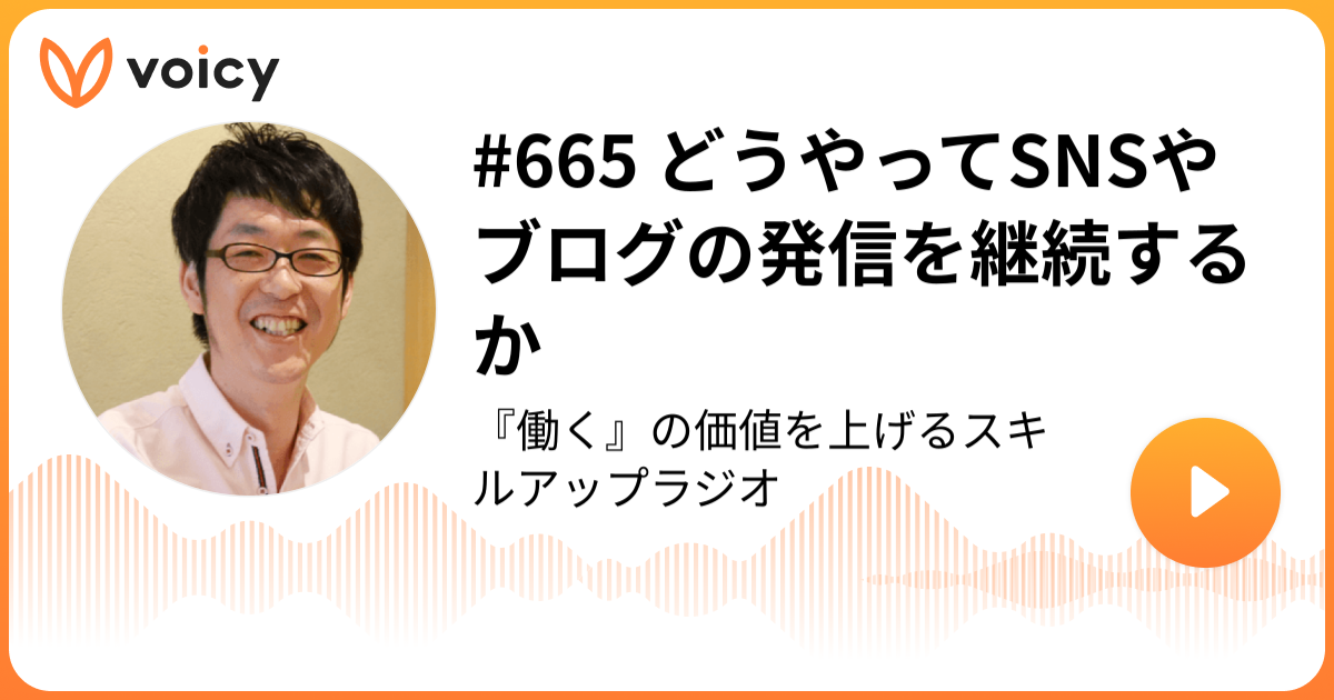 ということで、今日はVoicy「スキルアップラジオ」の放送から「どうやってSNSやブログの発信を継続するか」をお届けしました。