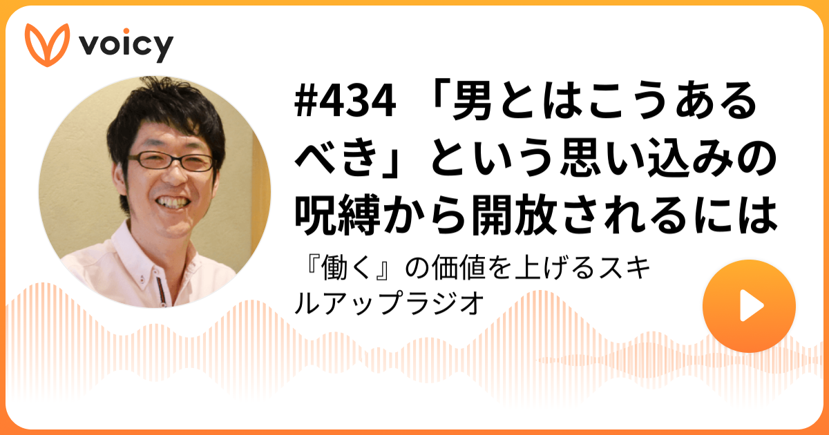 ということで、今日はVoicy「スキルアップラジオ」の放送から「『男とはこうあるべき』という思い込みの呪縛から開放されるには」をお届けしました。
