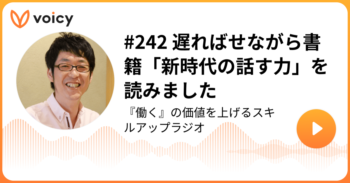 ということで、今日はVoicy「スキルアップラジオ」の放送から「遅ればせながら書籍「新時代の話す力」を読みました」をお届けしました。