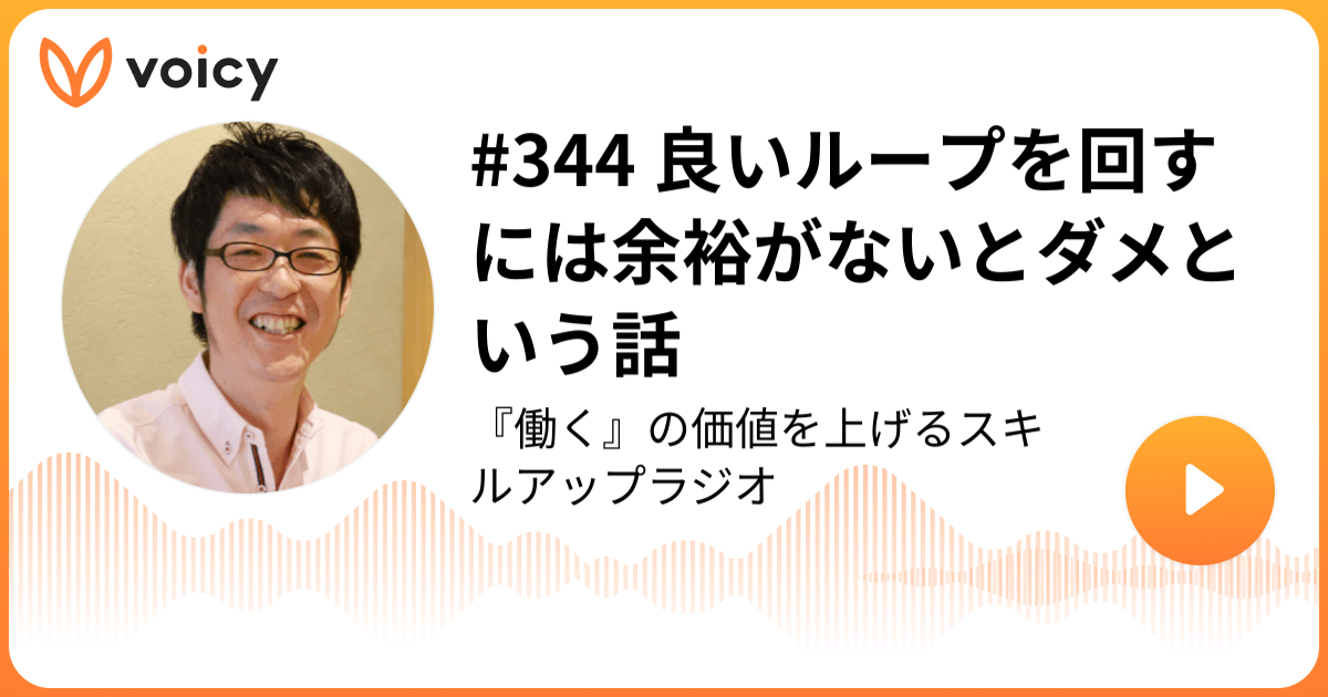 ということで、今日はVoicy「スキルアップラジオ」の放送から「良いループを回すには余裕がないとダメという話」をお届けしました。
