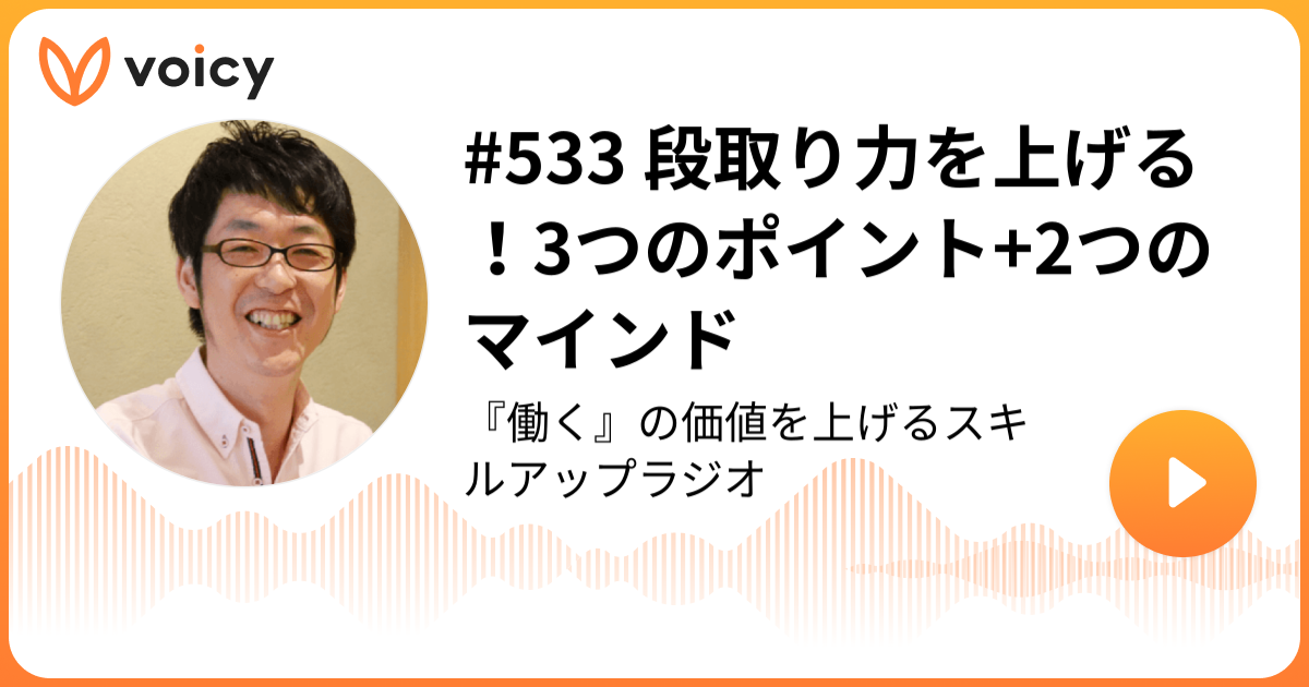 ということで、今日はVoicy「スキルアップラジオ」の放送から「段取り力を上げる!3つのポイント+2つのマインド」をお届けしました。