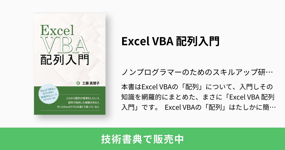続いて紹介するのが、「Excel VBA 配列⼊⾨」 著者は工藤真理子さんです。こちらは、ノンプロ研としては第2弾のプロジェクトで制作されました。