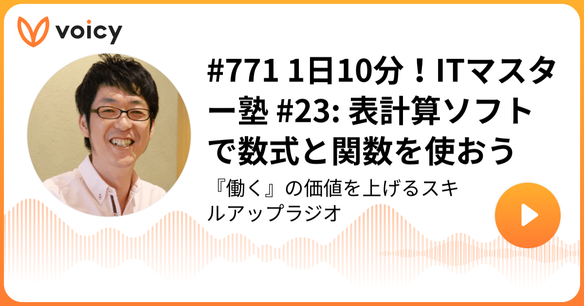 ということで、今日はVoicy「スキルアップラジオ」の放送から「1日10分!ITマスター塾 #23: 表計算ソフトで数式と関数を使おう」をお届けしました。