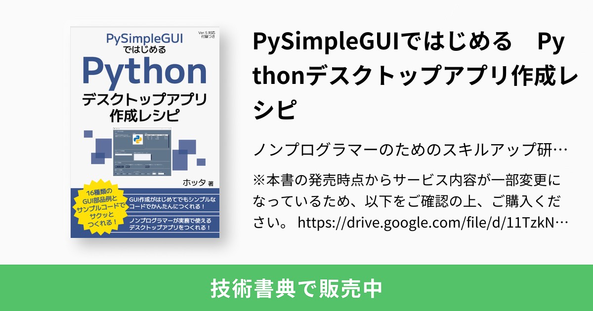 新刊「PySimpleGUIではじめる Pythonデスクトップアプリ作成レシピ」