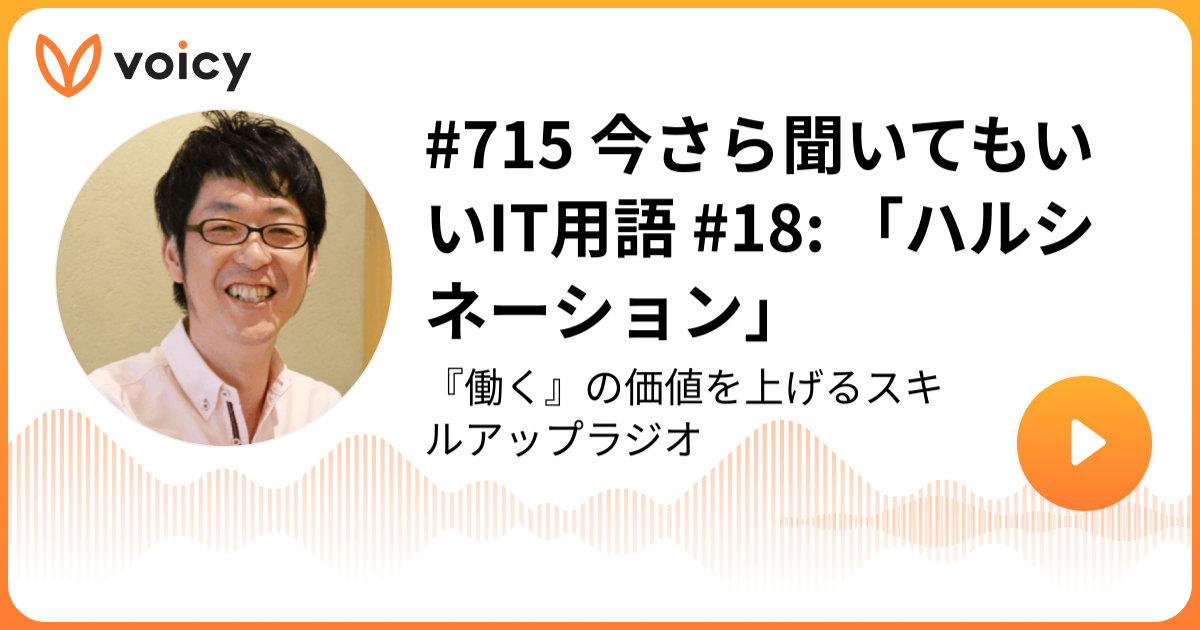 #715 今さら聞いてもいいIT用語 #18: 「ハルシネーション」 | タカハシノリアキ「『働く』の価値を上げるスキルアップラジオ」/ Voicy - 音声プラットフォーム