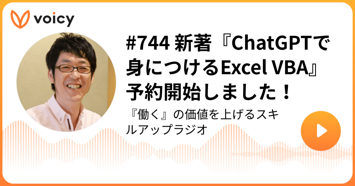 ということで、今日はVoicy「スキルアップラジオ」の放送から「新著『ChatGPTで身につけるExcel VBA』予約開始しました!」をお届けしました。