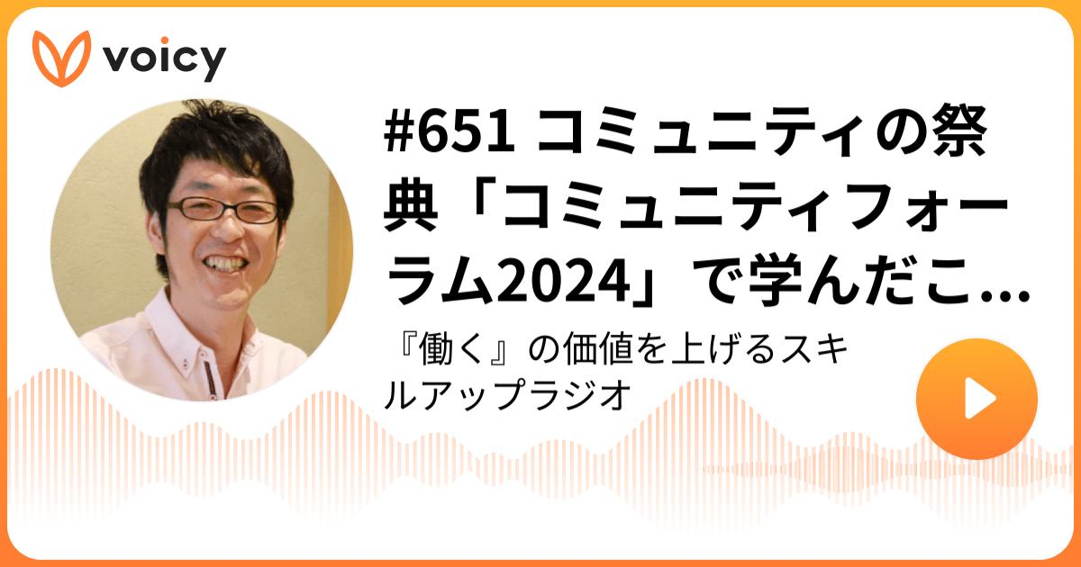 ということで、今日はVoicy「スキルアップラジオ」の放送から「コミュニティの祭典「コミュニティフォーラム2024」で学んだことと新たな一歩」をお届けしました。