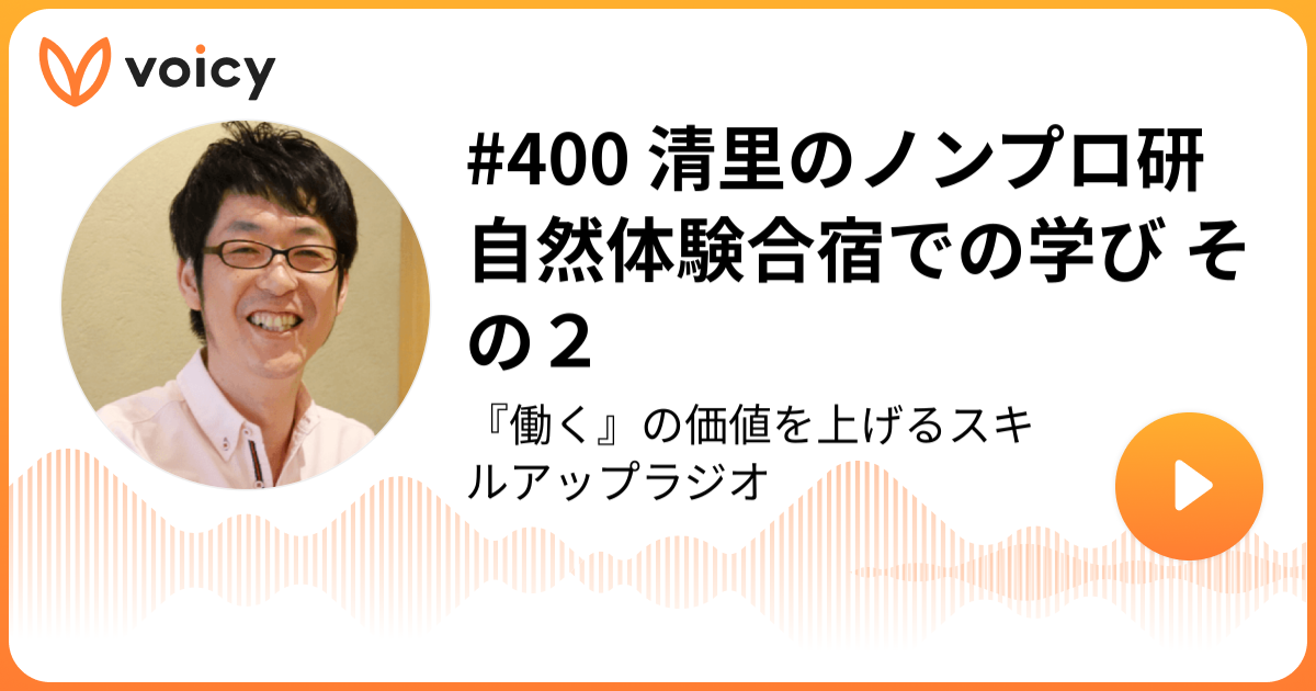 ということで、今日はVoicy「スキルアップラジオ」の放送から「清里のノンプロ研自然体験合宿での学び その2」をお届けしました。