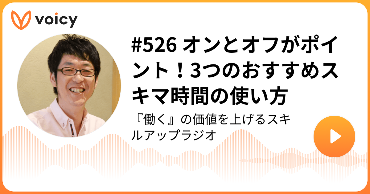 ということで、今日はVoicy「スキルアップラジオ」の放送から「オンとオフがポイント!3つのおすすめスキマ時間の使い方」をお届けしました。