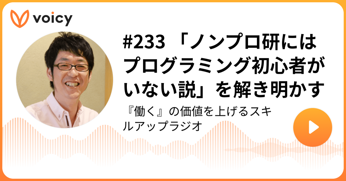 ということで、今日はVoicy「スキルアップラジオ」の放送から「「ノンプロ研にはプログラミング初心者がいない説」を解き明かす」をお届けしました。