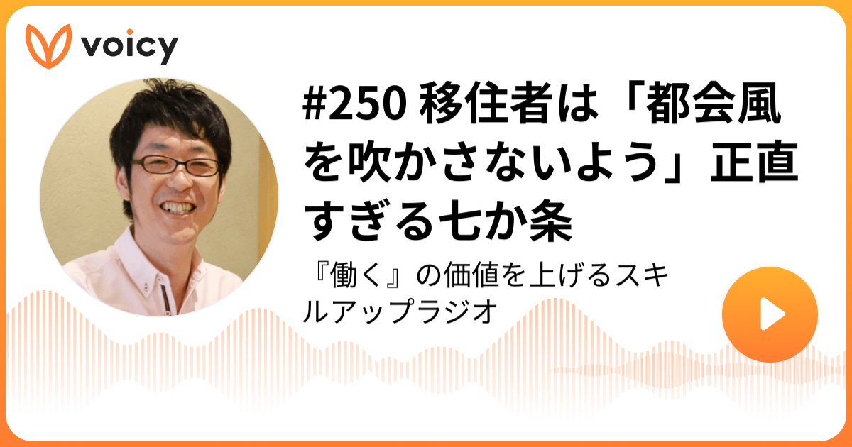 ということで、今日はVoicy「スキルアップラジオ」の放送から「移住者は「都会風を吹かさないよう」正直すぎる七か条」をお届けしました。