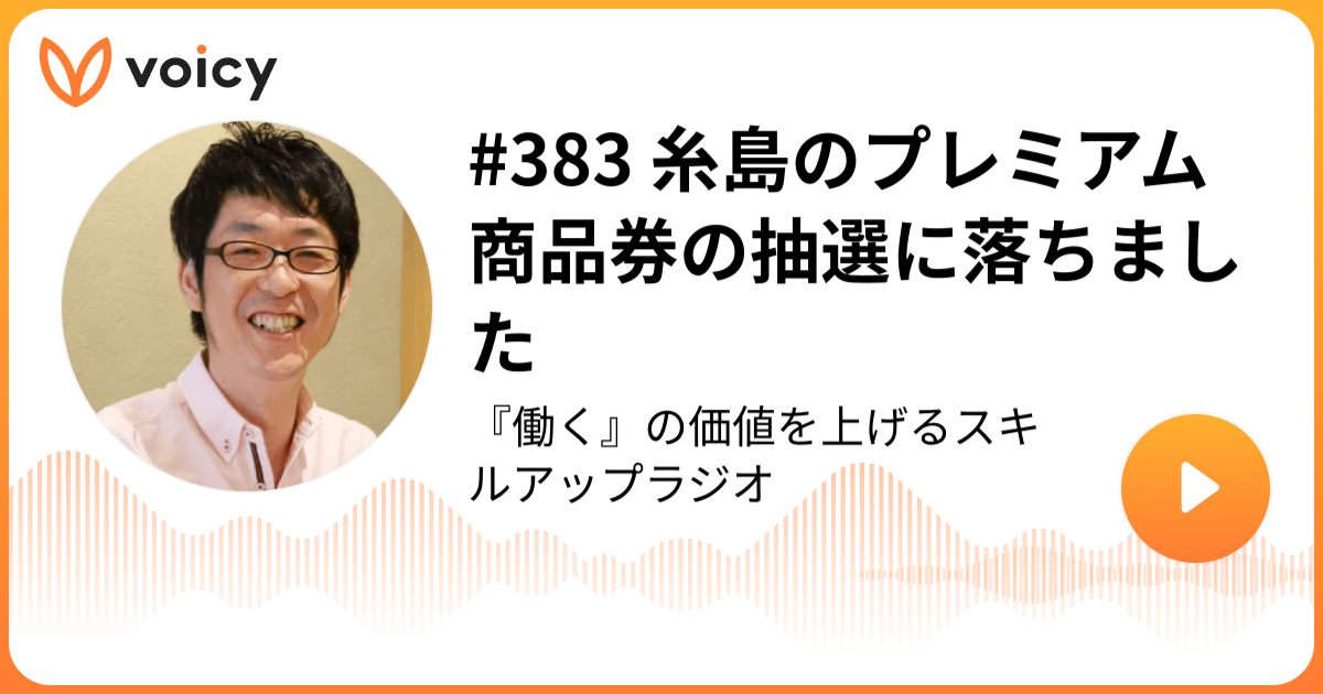 ということで、今日はVoicy「スキルアップラジオ」の放送から「糸島のプレミアム商品券の抽選に落ちました」をお届けしました。