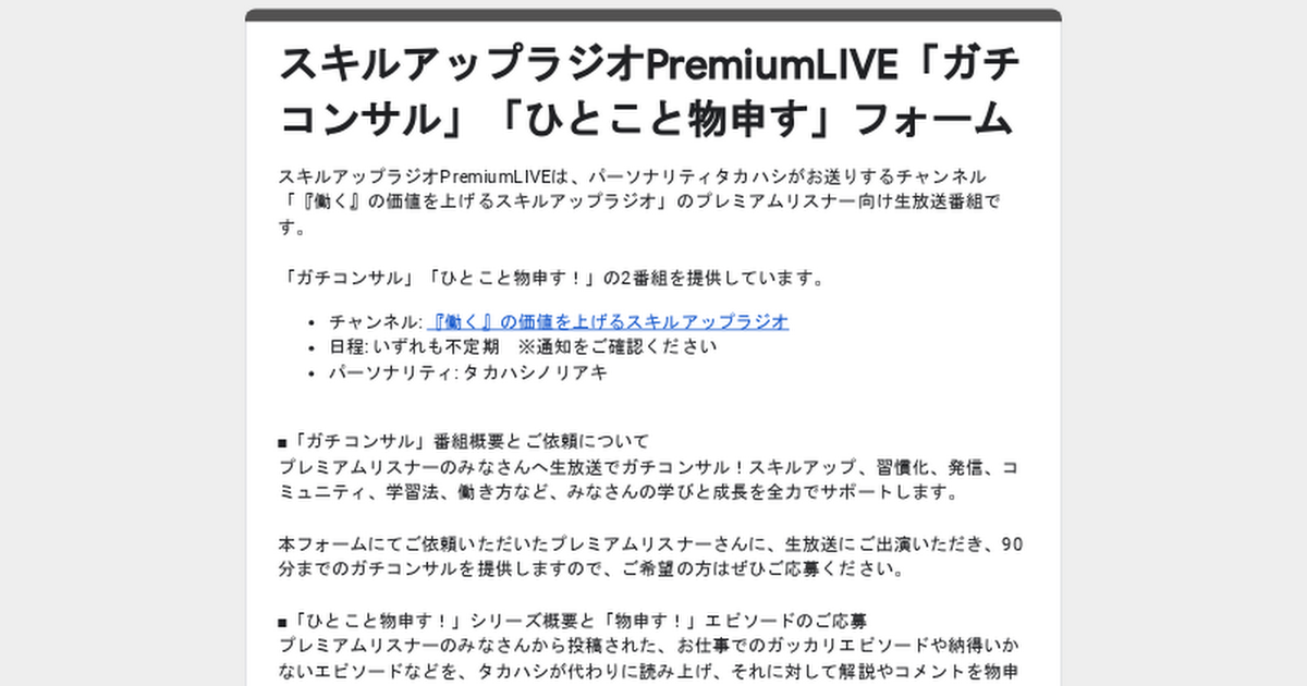 さて、改めまして、僕、タカハシノリアキはVoicyにて「スキルアップラジオ」というチャンネルを運営しておりますが、この度、「プレミアムリスナー」の募集を開始することになりました!