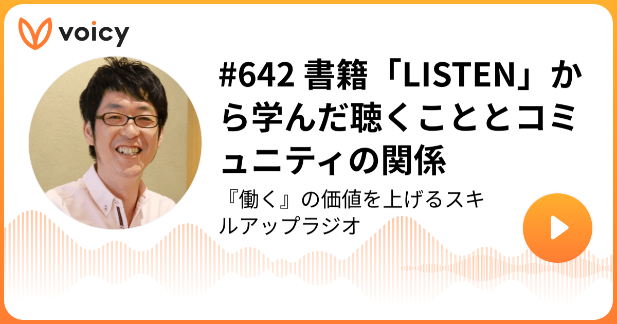 ということで、今日はVoicy「スキルアップラジオ」の放送から「書籍『LISTEN』から学んだ聴くこととコミュニティの関係」をお届けしました。