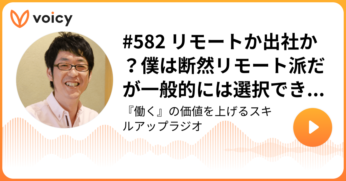 ということで、今日はVoicy「スキルアップラジオ」の放送から「リモートか出社か?僕は断然リモート派だが一般的には選択できるのがいい」をお届けしました。