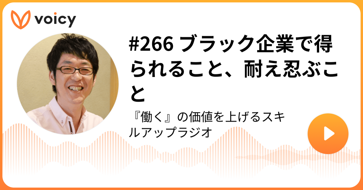 ということで、今日はVoicy「スキルアップラジオ」の放送から「ブラック企業で得られること、耐え忍ぶこと」をお届けしました。