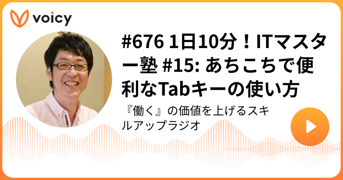 ということで、今日はVoicy「スキルアップラジオ」の放送から「1日10分!ITマスター塾 #15 あちこちで便利なTabキーの使い方」をお届けしました。