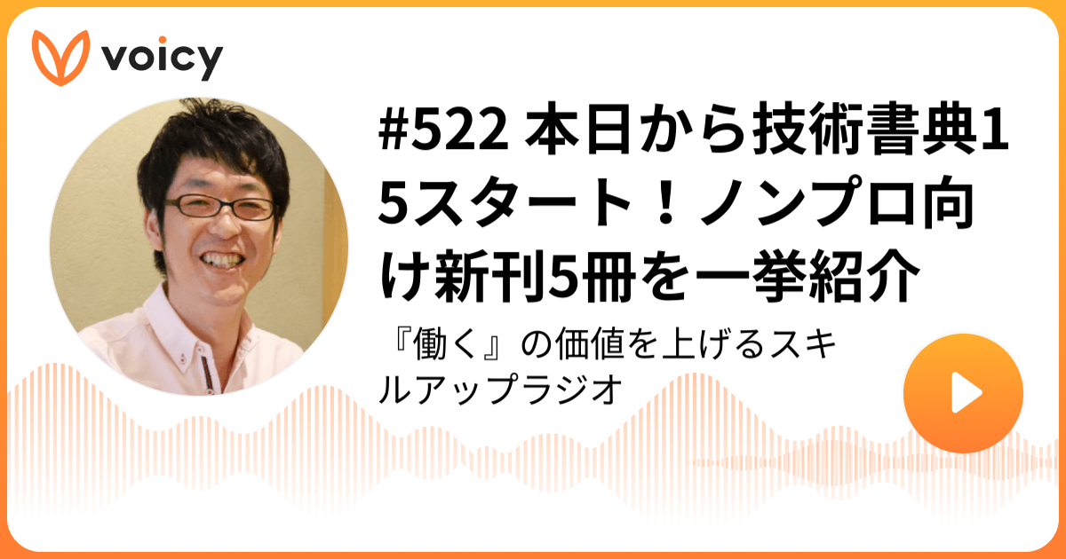 #522 本日から技術書典15スタート!ノンプロ向け新刊5冊を一挙紹介 | タカハシノリアキ「『働く』の価値を上げるスキルアップラジオ」/ Voicy - 音声プラットフォーム