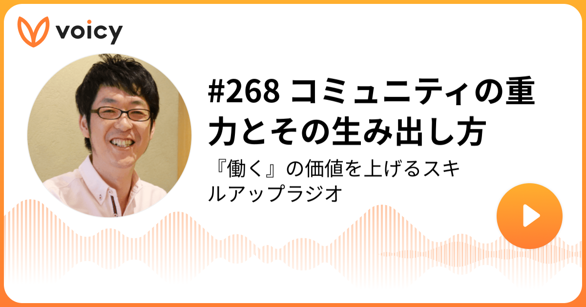 ということで、今日はVoicy「スキルアップラジオ」の放送から「コミュニティの重力とその生み出し方」をお届けしました。