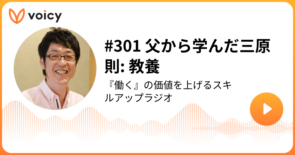 ということで、今日はVoicy「スキルアップラジオ」の放送から「父から学んだ三原則 教養」をお届けしました。