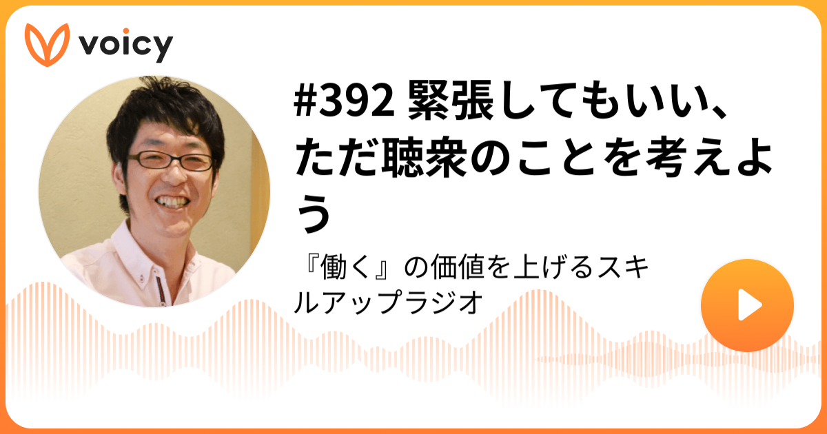 #392 緊張してもいい、ただ聴衆のことを考えよう | タカハシノリアキ「『働く』の価値を上げるスキルアップラジオ」/ Voicy - 音声プラットフォーム