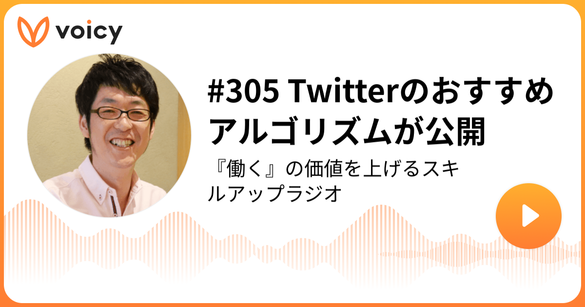 #305 Twitterのおすすめアルゴリズムが公開 | タカハシノリアキ「『働く』の価値を上げるスキルアップラジオ」/ Voicy - 音声プラットフォーム